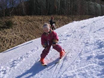 Unten: Michi beim Skifahren im Steilhang am 24.02.08 - fährt bald besser als der Papa: