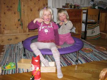 Unten einige neue Fotos vom Jänner 2009: Wir haben mit unseren beiden Blondienen viel Freude: Michis erste Versuche beim Eislaufen, die beiden beim Baden, Andi beim "Angeln", Zähneputzen zu zweit macht mehr Spaß als alleine, Michi mit ihrem Lieblingspuzzle und Andi möchte mit 2 Jahren und 4 Monaten auch schon unbedingt Skifahren.
