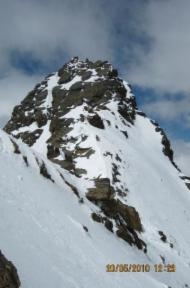 20.05.10: Zufrittspitze mit Michael Elsässer. Für's Rennradradeln ist's wirklich noch a bissl zu kalt und mit dem MTB geht's wegen dem Schnee noch nicht besonders hoch hinauf. Jetzt fast Ende Mai und über 2000 m immer noch tiefster Winter, gut dass es die Ski gibt. Wir sind heute nach Südtirol ins Martelltal bis Hölderle und sind dort um 8 Uhr weg - bei der momentanen Kälte muss man für die Frühjahrsskitouren nicht mal besonders früh aufstehen. Haben die Ski ca. 650 hm getragen und sind dann ab 2100 m mit Felle weiter. Beim Aufstieg hat's schon leicht aufgefirnt, aber darunter war alles gut durchgefroren. Immer genau in südlicher Richtung ging's im herrlichen Skigelände aufwärts. Beim Soyferner war es dann gehörig steil, so dass wir teilweise stapfen mussten. Nach dem Skidepot am Joch zum Ultental, mussten wir am Ostgrat noch etwas unser Kletterkönnen auspacken (siehe rechtes Bild). Das Wetter in Südtirol ist wirklich um einiges besser als bei uns - wir hatten meist Sonne und den Nordföhn spürten wir kaum. Die Abfahrt am Ferner war richtig pulvrig und von 3000 bis 2100 war's dann schön firnig. Wir sind anschließend etwas anders als beim Aufsteig weiter - hier war's dann zwar wegen den Stauden recht mühsam, aber immerhin konnten wir bis 1850 m runter fahren, d. h. wir hatten rd. 1500 hm Abfahrt. Diese doch recht knackige Tour wird anscheinend nicht besonders häufig gemacht, war aber für mich eine neue Entdeckung. Im Foto links das herrliche Skigelände - fast so weit das Auge reicht.