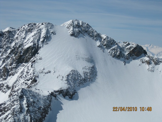 20.03.10: Mit Martin Kofler die Lieblingstour im Ötztal. In der früh zeigte das Thermometer in Sistrans +4° und es war windstill; auch waren ein paar Sterne zu sehen - eigentlich gar nicht so schlecht. Im Ötztal beim Start (schon um 6:25 Uhr) war's dann einigermaßen gefroren. Aber um so weiter wir rauf kamen, um so wärmer wurde es. Teilweise brachen wir ein und es war ziemlich mühsam - wir hatte kein gutes Gefühl und waren kurz vorm Umdrehen. Ab 2300 m stollten dann die Felle wegen dem pappigen Pulverschnee, aber jetzt war der Untergrund wenigstens tragfähig. Wir kämpften uns weiter und oben wurde es dann immer besser - auch hatten wir hier eine Spur (die aber nicht bis ganz nach oben führte). Endlich, nach 4:40 h waren wir auf dem Gipfel und wahrscheinlich heuer sogar die ersten. Wir gingen dann den kurzen Nordgrat runter und fuhren die Südost-Rinne ab. Bis 2300 m war die Abfahrt recht gut, doch dann mussten wir uns im Faulschnee hinuntermogeln. Nach fast 7 h waren wir wieder beim Auto und waren schon froh, trotz der teilweise widrigen Bedingungen alles geschafft zu haben. Dieser Winter ist wirklich nicht besonders - vorher dauernd saukalt und jetzt plötzlich die Nullgradgrenze auf fast 3000 m.
