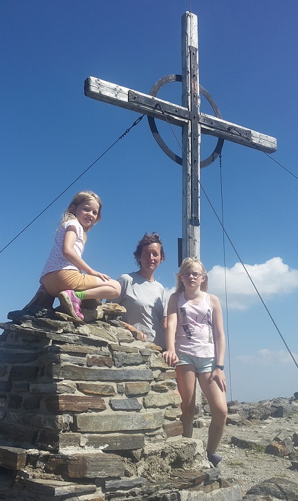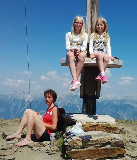 13.08.15: Familienausflug Glungezer: Bis zu Gottfried auf der Glungezerhütte sind meine Moosbeeren schon hinaufgelangt. Wir wollten eigentlich oben Moosbeernocken genießen, derweil hat Gottfried die ca. 13,5 kg für die Winterzeit eingefroren. Rikki ist mit den Kindern mit der Kofelbahn zum Schutzhaus und i bin direkt nach dem Beerensammeln zum Weg Kofel-Glungezer hinauf, wo wir uns dann getroffen haben. Andi und Michi sind ganz brav gegangen. Noch mehr überrascht haben sie mich, als sie sogar noch bis zum Glungezergipfel gegangen sind. Nach der Stärkung auf der Glungezerhütten-Terrasse ging's wieder den gleichen langen Weg retour - Michi und Andi werden ja doch richtige Berggämsen.
