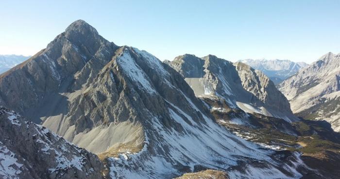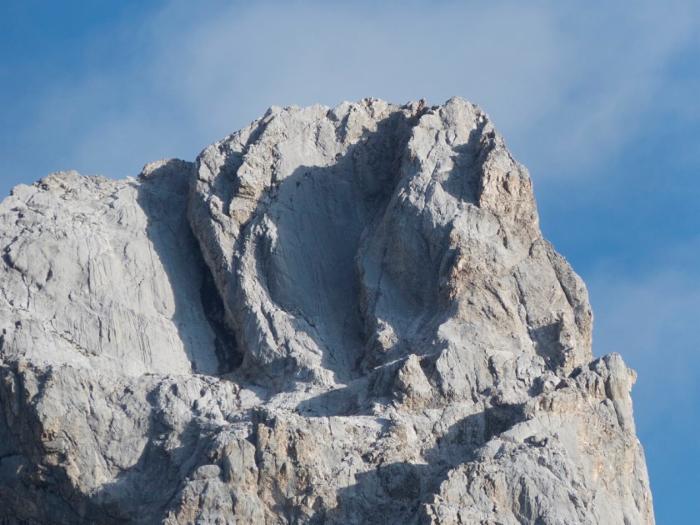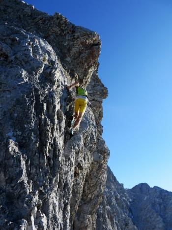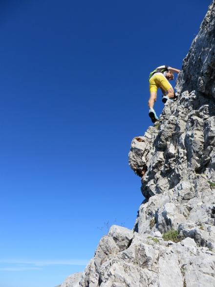13.11.15: Bettelwürfe ü. Osteck: Mit dem Radl von daheim über Hall zur Wasserfassung im Halltal und dann über die Alpensöhnehütte zum Hüttenspitz. Weiter ging's dann immer im schönen Kraxelgelände übern Nagelwandspitz auf die Wechsel und anschließend das Osteck hinauf. Diesmal bin i dort nicht über das gerillte Wandl, sondern etwas leichter, dafür ein bissl luftiger wie auf dem 2. Foto (das hab ich aus dem Internet) erkennbar, unten bis zur kleinen Scharte ganz rechts und dann die kleine Rissverschneidung hinauf und schließlich in die rechte schattige Verschneidung hineingequert und dort weiter - hat mir gefallen. 10 min. nach mir kam dann Rikki übern Normalweg zum Gipfel. Ich bin dann schnell übern Kl. Bettelwurf runter und unter der BW-Hütte haben wir uns dann wieder getroffen und sind gemeinsam abgestiegen. Heute war's auf den Südhängen nochmal sommerlich. Mit dem Radl bin i dann übers Hasental heim.