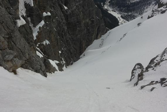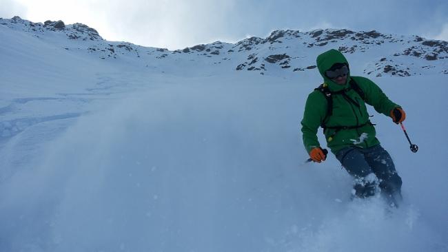 03.01.15: Das gleiche Programmchen absolviert wie gestern. Gut, dass bis 1600 m Nebel war, so hat sich der Harsch in Grenzen gehalten. Heute sind kaum mehr Leute von der Karlskirche weg. Die Direttissi hat der Wind noch ziemlich verschont, so hab ich wieder pulvern können.