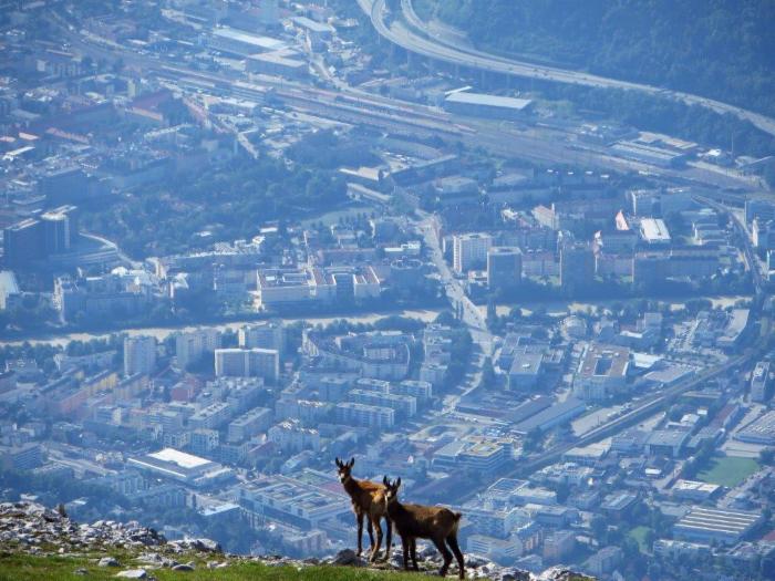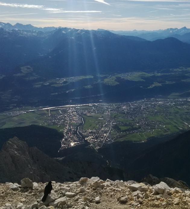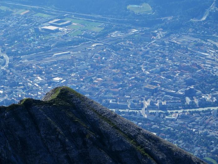 31.10.15: Hohe Warte Südgrat: Gehe ja den Südgrat seit ca. 12 Jahren mind. 1 mal jährlich und so könnte es heute schon das 15. mal gewesen sein. Mancher mag zwar denken - ach, wie langweilig. Für mich ist er immer wieder genauso schön wie beim ersten mal. Kann ihn mit dem Radl von daheim aus machen, man ist immer alleine unterwegs, richtig lässige luftige Kletterei im für karwendelverhältnisse recht festen Fels und schön südseitig ausgerichtet. Heute bin ich nicht übern Brandjoch-Südgrat runter, weil auf mich nachmittags daheim wegen einer Brennholzlieferung recht viel Arbeit gewartet hat. Nachfolgend ein Traumfoto von Meisterfotograf Thomas Engl aus Zirl - er hat es heuer im Sommer in der Gegend gemacht, wo ich heute unterwegs war. Besser kann man die Gegensätze Stadt, Lärm und Hektik auf der einen und Natur, Stille und Frieden auf der anderen Seite in einem Foto wohl nicht darstellen. Diese Gegensätze auf so geringer Distanz gibt's wohl nur bei uns in Innsbruck. Keine Ahnung wie lange Thomas auf dieses preisverdächtige Foto gewartet hat.