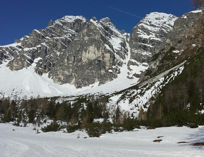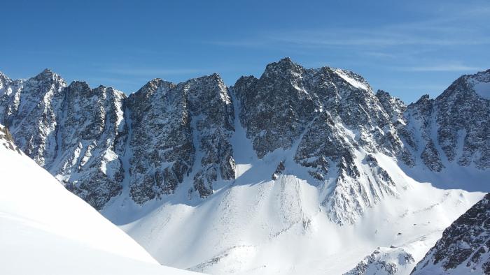 Oben am Seeblas wurde dann das herrliche Panorama der Brunnenkogelwand genossen und dann ging's wieder hinunter ins Längental und zurück zum Auto bei wechselnden Schneebedingungen – teilweise war aber auch guter Pulver dabei.