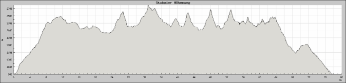 Auch aus zeitlichen Gründen haben wir so getan, als ob es die Hütten gar nicht gibt und sind als Selbstversorger unterwegs gewesen. Nur bei Georg Seger auf der Bremer Hütte wurden wir weich und haben uns ein Cola genehmigt. Lukas hat die Tour super aufbereitet: Hier die Zwischenzeiten mit Pausen und das unten dargestellte GPS-Höhenprofil als pdf (allerdings gingen die damals am Schluss zum Elferlift hinauf - wir sind ja die klassische Runde, also das Pinnistal hinaus bis Neder und zurück bis Neustift, gegangen). Auch viele schöne Fotos gibt's auf www.lukasruetz.at.