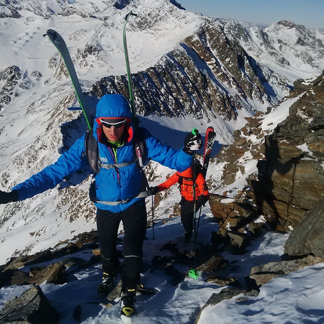 Die Abfahrt vom Gipfel um Punkt 10:00 Uhr war oben noch hart. In der immer noch harten und verknollten Rinne bin i wieder auf die Steigeisen gewechselt – eigentlich das erste Mal, dass i nicht alles mit Ski abgefahren bin. Danach war’s purer Genuss – Firn – bin gerade zum richtigen Zeitpunkt unterwegs gewesen. So gut hab ich den Habicht noch selten erwischt.
