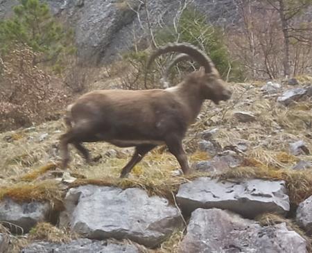 Ein bissl Sorgen haben mir die komischen hohen Wolken gemacht und auch sonst soll sich Saharastaub über uns in der Luft aufhalten – durchgefroren, wird es wohl nicht sein. Bin um 7:00 Uhr von daheim mit dem Radl weg und kurz vor acht war ich bei der Wasserfassung im Halltal. Dort hat mich dann ein stattlicher Steinbock beobachtet (Foto). Trotz der nicht gerade optimalen Bedingungen, hab ich mich doch für’n Bettelwurf entschieden.