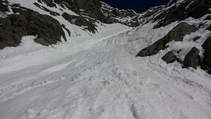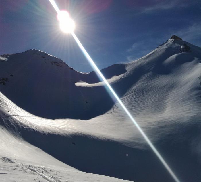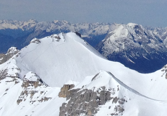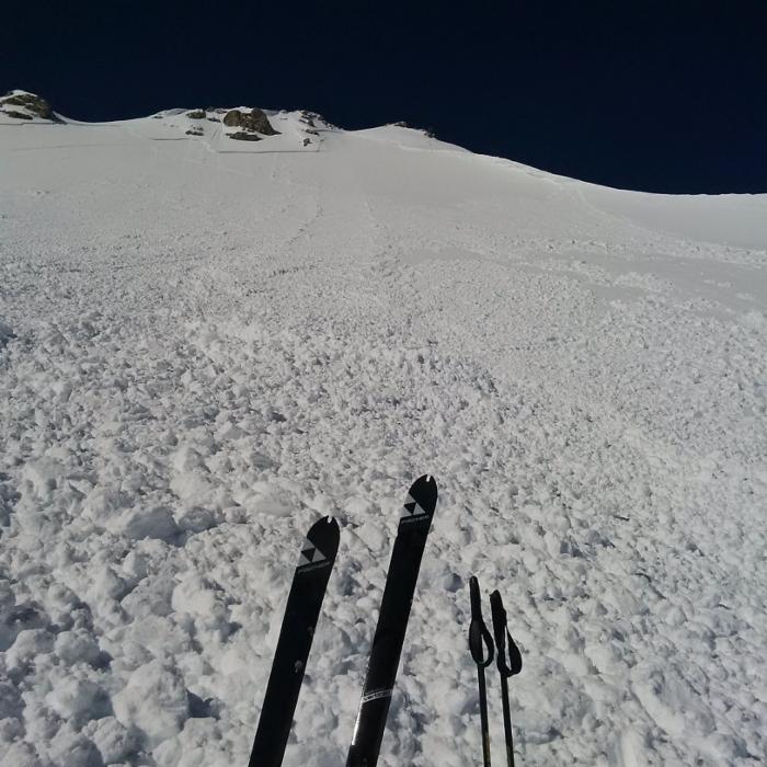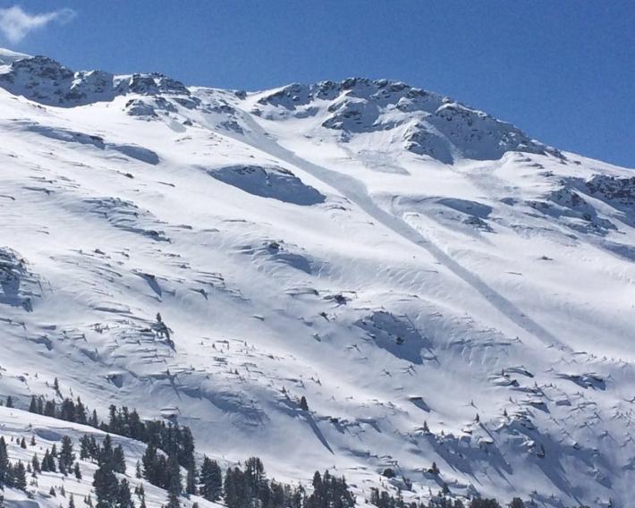 26.03.16: Glungezer von daheim: Weil's in der Früh noch ziemlich grauslig war, hab ich keinen rechten Auftrieb gehabt. Da das Wetter nur zögerlich besser wurde, ist mir mal wieder nix besseres als der Glungezer eingefallen. Den Parkplatz-Stress am Tulfer Berg mag ich gar nicht und so bin i von daheim weg. Mit dem Radl bin i nit weit gekommen und zu Fuß ging's dann durch den Wald bis ca. 1300 m. Bis zur Kalten Kuchl war dann Spuren auf den Forstwegen angesagt. Beim weiteren Anstieg hab ich dann immer wieder die sehr verlockende Direttissi beobachtet - hm, allerdings sind dort immer wieder kleine Schneerutsche abgegangen. Hab mich daraufhin für den Glungezer und den Osthang entschieden, auch weil mir auf der Sonnenspitze zu viel los war. Beim Spuren auf den Glungi, die letzten 250 hm, hat sich der Schnee unter mir immer wieder gesetzt, weil der Neuschnee ziemlich vom Wind beeinflusst war - heute heißt's also besonders aufpassen (drum ist selber spuren, nie ein Fehler). Gut, dass der Osthang vom Gipfel bis runter auf 2500 m nicht besonders steil ist und danach war dann der Schnee schon stabiler gelagert und so war der Osthang m. E. schon vertretbar und auch gut zu fahren. Unten auf der Piste, sah ich dann, dass die gesamte Direttissi infolge Selbstauslösungen aus den Felsen heraus eingelahnt war und zwar genau dort, wo ich eigentlich immer runter fahre. So ein Anblick macht dann schon nachdenklich. Leider hab ich nix zum Fotografieren dabei gehabt. Viele Skifahren haben Fotos gemacht - vielleicht liest ja jemand das und es wäre sehr nett, wenn man mir ein Foto mailen würde - Danke richioben@hotmail.com. Danke Alfred Platzer (www.brennstueberl.at) und Christian Maier, dass ihr mir Fotos geschickt habt - hoffe, ihr seit einverstanden, wenn ich eins auf die Seite tue. Nach sehr viel Schnee schaut's auf dem Foto zwar nicht aus, aber das könnte schon reichen - mir ist's jedenfalls eine Warnung.