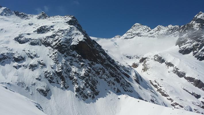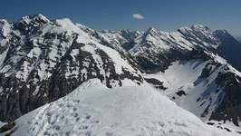 30.04.16: Habicht von Süden: Habe mir gedacht, dass eigentlich heute an den Südhängen einer der besten Firntage des Jahres sein müsste. Klare und kalte Nacht, gestern zwar noch relativ kühl, aber durch die starke Sonnenstrahlung jetzt Ende April müsste sich der Schnee südseitig schon gut umgewandelt haben.