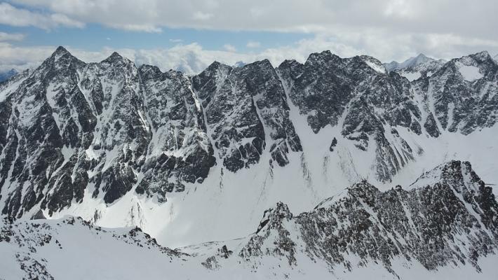 Unten das Foto vom Seeblasskogel hinüber zur schönen Brunnenkogelflanke – welche Rinne ist die Richtige?