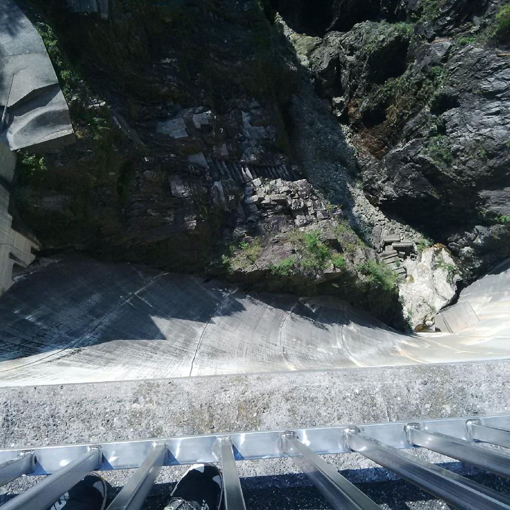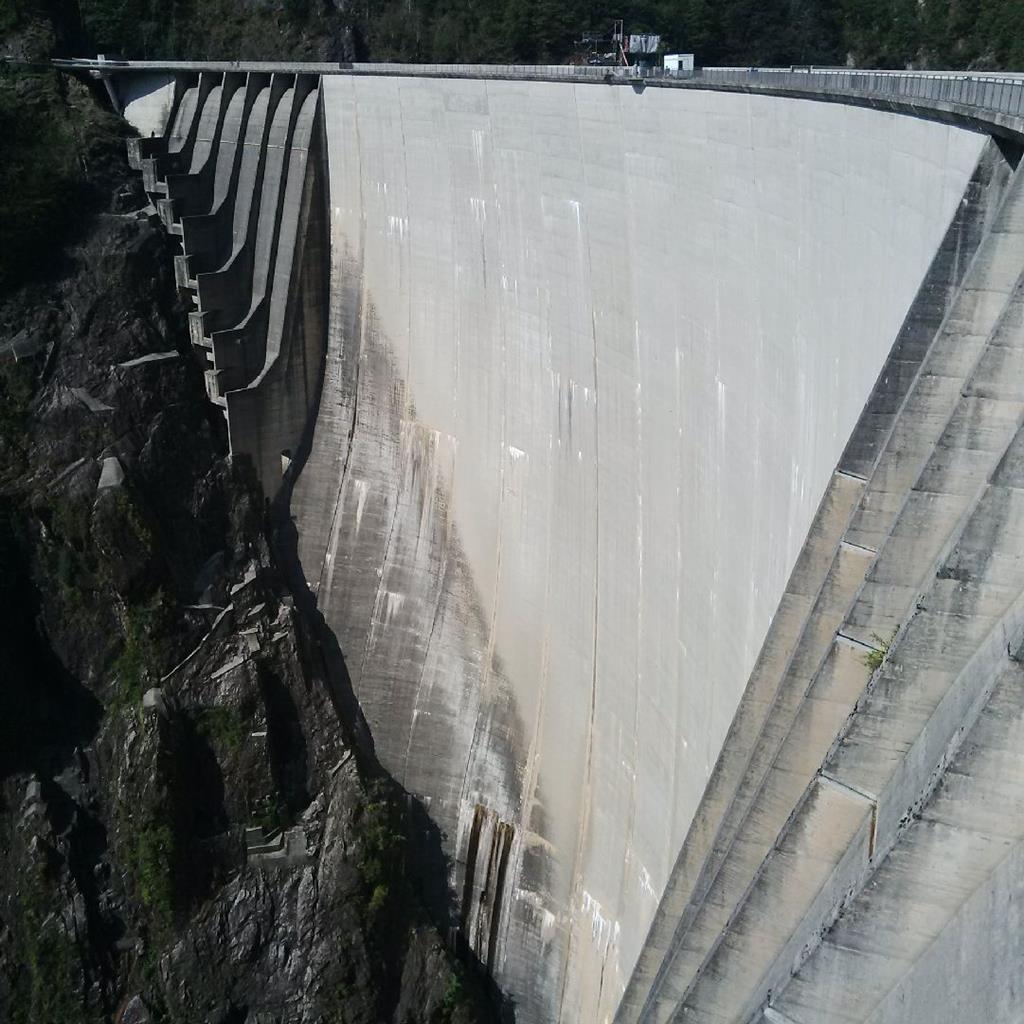 28.09.16: Beruflich in Locarno: Die Verzasca-Staumauer mit rd. 230 m Höhe ist schon ein imposantes Bauwerk - noch beeindruckender ist, wenn die Hochwasserentlastung geöffnet ist (siehe Bilder im Internet):