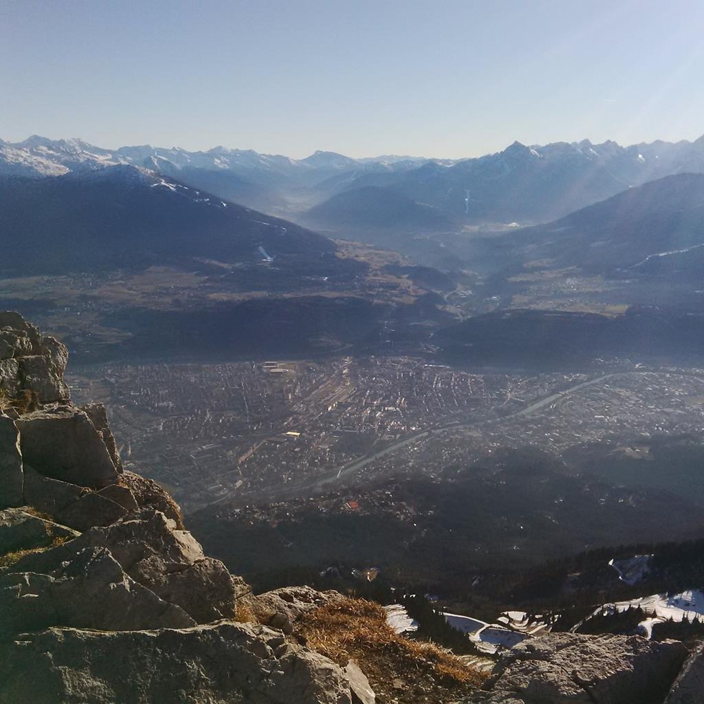 16.12.16 Hafelekarspitze: Nach dem Planötzenhof liegt in den schattigen Abschnitten auf der Forststraße eine dünne Schneeauflage. Bin aber bis zum Rastlboden auf 1220 m ganz gut raufgekommen. Danach zu Fuß weiter über die Bodensteinalm. Danach in den steilen Hängen direkt den Südgratbuckel hinauf liegt kaum noch Schnee. Unten ein Foto von der Hafelekarspitze mit Innsbruck unten in der Kälte. Wir wohnen schon in einem besonders schönen Fleck auf der Erde?