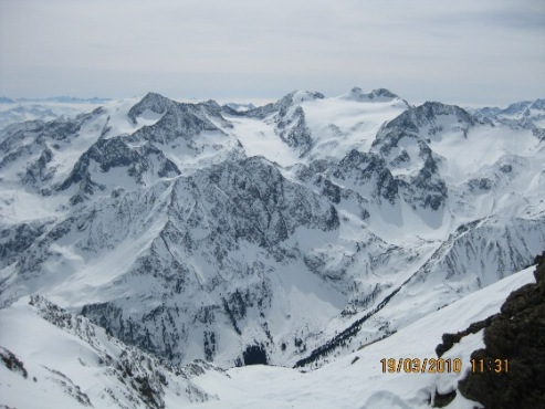 30.12.10: Wilder Freiger mit Helli Praxmarer vom Stubaital über die Bsuchsalm: In den Stubaiern hat's schön viel Schnee gemacht. Wir haben von unten bis oben gespurt. Die Zwinge nach der Bsuchsalm und der Bachgraben sind momentan auch Genuß. Bis auf ca. 2900 m haben wir richtig schwer 30 cm tief spuren müssen, danach im oberen Gletscherbereich ist es dann mehr oder weniger windgepresst, was den Aufstieg erleichterte. Von Süden über den Übeltalferner (Ridnauntal) kamen heute auch Leute herauf. Die ersten 500 hm der Abfahrt waren teils windgepresst, aber dann konnten wir bis runter die Abfahrt richtig genießen - ein richtig schöner Pulvertag, wie man ihn nicht so oft erwischt.
